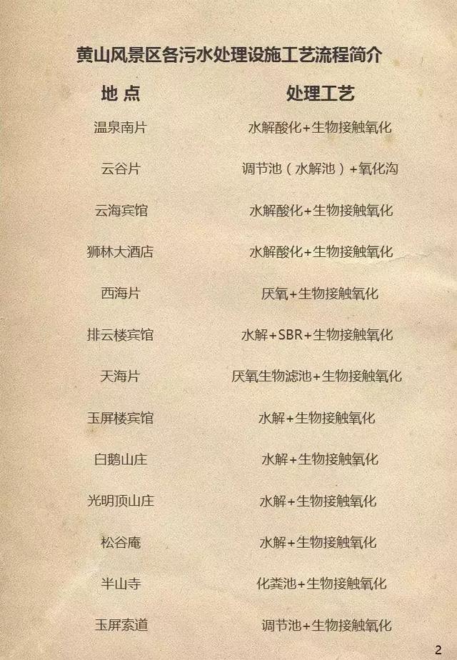 黃山風景區不同污水處理工藝